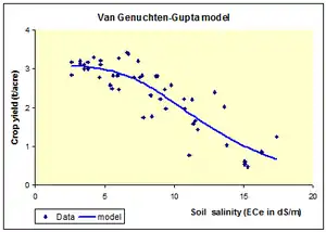 The Van Genuchten–Gupta model is an inverted S-curve applicable to crop yield and soil salinity relations.[1] It is named after Martinus Theodore van Genuchten and Satyandra K. Gupta's work from the 1990s.