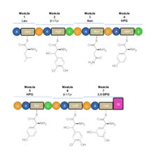 - ↑ Schmartz PC, Zerbe K, Abou-Hadeed K, Robinson JA (August 2014). "Bis-chlorination of a hexapeptide-PCP conjugate by the halogenase involved in vancomycin biosynthesis". Organic & Biomolecular Chemistry. 12 (30): 5574–7. doi:10.1039/C4OB00474D. PMID 24756572.