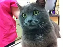 - Blue - On December 16, 2013, Blue, a Russian Blue cat with a badly infected tail was rescued when he was trapped in White Rock.[28] Blue had lived outside for over two years, but showed himself to be completely tame after being rescued.[29] Most of his tail was amputated at the time of his neutering surgery.[29] Blue was soon adopted after being fostered.[30]