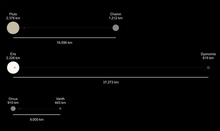 - 1 2 Rabinowitz, David L.; Owainati, Yasi (November 2014). The synchronous rotations of Eris/Dysnomia and Orcus/Vanth binary systems. 46th DPS Meeting. American Astronomical Society. Bibcode:2014DPS....4651007R. 510.07.