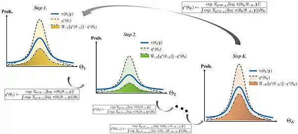 Pictorial illustration of coordinate ascent variational inference algorithm by the duality formula[4]