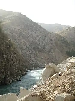 The Varzob rises on the southern flank of the Gissar Mountains, and flows south. It passes through the Varzob District, the town Varzob and through the Tajik capital Dushanbe.