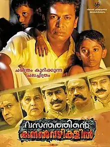 Vasanthathinte Kanal Vazhikalil is a 2014 Malayalam-language political drama film directed by Anil V Nagendran, who is also the producer, writer and lyricist. The film stars Samuthirakani and Tamil actress Thamarai in the lead roles with an ensemble supporting cast of Mukesh, Sudheesh, Surabhi, Rithesh, and Baiju VK.[1]