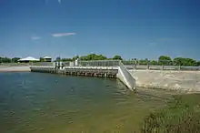 Like the Vasse floodgates, the Wonnerup floodgates were built by the Public Works Department in 1907. The site chosen was near the Forest Beach Road bridge and like the Vasse floodgates, they were refurbished in 1927, 1942, 1991 and replaced in 2004.[3] The new site was 20 m (66 ft) upstream from the original gates. Once the new gates were operational, the old gates were removed and destroyed, though the abutments were left in place, with the south abutment having a high degree of authenticity from the original structure.[1]