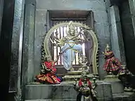 The legend of Bhikshatana is built in a stucco image in the temple