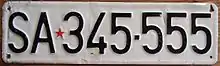 - Military plates had Eurostrip-like from previous series (XX-nnnnLL) but without the blue background. This plate consists of 5 numbers then one letter (e.g. 00000-X)