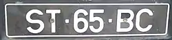 The current standard format of Cape Verde registration plates. ST=Island of Santiago.