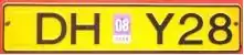 | Customs | 12 1234 12 | Four white numbers on a black background with two letters in a vertical red line on each side. | For temporary import. The number for the month on the left side and the year on the right side, indicating the duration of the registration. | |