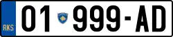A plate issued in 2017 resembling those issued by UNMIK in 2001. Even though new plates have been introduced, this plate is preferred to be used when crossing to Serbia. Bearers of RKS plates are issued with temporary Serbian plates instead.