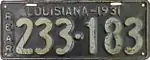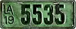 1919 | Embossed black serial on light green plate with border line; stylized "LA" and "19" at left | none | 12345 | 1 to approximately 50000 | |