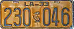 1933 | Embossed black serial with pelican separator on orange plate with border line; "LA–33" centered at top | none | 123-456 | Issued in blocks by horsepower class and branch office | |