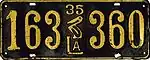 1935 | Embossed yellow serial with pelican separator on purple plate with border line; "35" and "LA" above and below pelican respectively | none | 123-456 | Issued in blocks by horsepower class and branch office | |