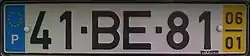 In 2020 with the change to the AA–01–AA, the yellow ribbon containing the date of first registration is being discontinued due to authorities in other countries mistaking the registration date as an expiration date.[1] In addition, the dashes that separate each block of numbers or letters have been removed from the new plate format. Owners of vehicles that need replacement plates will be able to choose whether such plates are produced according to either the old or new format.