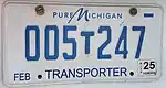 Truck | Pure Michigan logo at top, weight class sticker at bottom | AB12345 | BA00000 to BD52911 (as of July 2023) | front and rear plates on tractor-trailers |