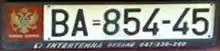 Temporary license plates show after the coat of arms the letters RP over each other as well as a two digit representing year number. RP means registrovan privremeno which means registered temporarily. The license plate concludes with three digits. Temporary plates are used among other possible uses for vehicles owned by temporary residents.