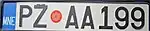 Montenegro also has agricultural plates. These plates are used by agricultural machines like tractors etc. The plates consist of two-letter code of the municipality where the vehicle is registered, then the coat-of-arms of Montenegro followed by two serial letters and two serial numbers on the lower side. The characters are printed in white on a light-green background.