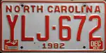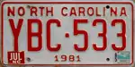 1981–82 | As above, but with "NORTH CAROLINA" at top and "1981" centered at bottom | XHA-101 to approximately YJZ-999 | |||