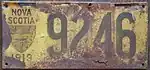 1919 | Black serial on yellow flat metal plate; "NOVA SCOTIA", provincial shield and "1919" at left | 12345 | 1001 to approximately 12000 | |