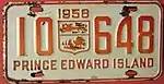 1958 | Embossed red serial on white plate with border line; "1958" and provincial shield used as separator; "PRINCE EDWARD ISLAND" at bottom | none | 12-345 | 10-001 to approximately 25-600 | |