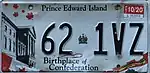 - ↑ Tanner, Eric N. "Prince Edward Island Passenger License Plates". allaboutlicenseplates.com. Retrieved December 17, 2020.
