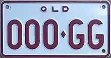 - 1 2 Reid, Sue (May 2011). "Queensland Number Plates". Queensland Family Historian. 32 (2): 46.