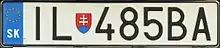An example of Slovak car registration plate after entry of Slovakia to the EU with coats of arms - IL stands for Ilava District