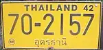 All DLT-registered vehicles are required to mount a registration plate in an easily visible position at the front and at the rear of the vehicle, except for motorcycles, for which only rear-mounting is required. Vehicles must also display an annual tax payment decal on the windshield or another visible location, depending on the type of vehicle.[1][2]