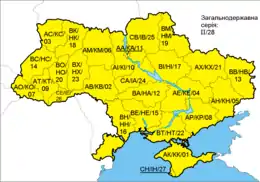 | 21 | AX, ХА, ХВ, ХК | Kharkiv Oblast |