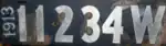 | 1913 | Riveted aluminum serial on dark blue plate; vertical "1913" at left | none | 12345W | 1W to approximately 34100W | ||