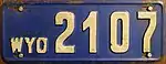 1914 | Embossed white serial on blue plate; "WYO" at bottom left with silver state seal above | 1234 | 1 to approximately 2500 | |