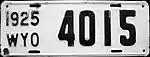 1925 | Embossed black serial on white plate; "1925 WYO" at left | 12345 | 1 to approximately 45000 | |