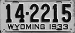 1933 | Embossed black serial on white plate; black lines at top and bottom borders; "WYOMING 1933" at bottom | 1-1234 10-1234 |