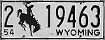 1954 | Embossed black serial and Bucking Horse and Rider on white plate with border line; "54 WYOMING" at bottom | 1-12345 10-1234 |