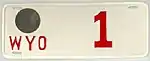 1913 | Embossed red serial on white plate; "WYO" at bottom left with silver state seal above | 1234 | 1 to approximately 1600 | |