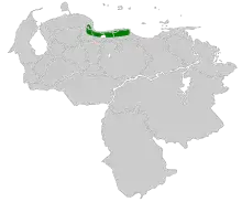 The Venezuelan wood quail is principally found in the central part of Venezuela's Coastal Range, from Carabobo east to northwestern Miranda. There are also two sight records from Táchira in the west near the Colombian border. It inhabits the floor of subtropical cloudforest at elevations between 800 and 2,400 m (2,600 and 7,900 ft).[7]