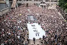 - ↑ "In Pictures: 'Free Hong Kong; democracy now' - Thousands protest extradition bill, amid security lockdown". Hong Kong Free Press HKFP. 2019-07-21. Retrieved 2020-09-27.