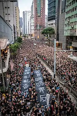 - ↑ "【不斷更新】反送中黑衣遊行迫爆港島 民陣:「二百萬零一人」出席 | 獨媒報導". 香港獨立媒體網. 16 June 2019. Retrieved 2020-09-28.