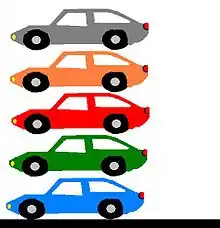 The vertical queue assumption presumes that vehicles on a roadway do not back up over the length of the roadway, which would be considered a horizontal queue,[1] but rather stack up upon one another at the point where congestion begins or at the stop line of a traffic signal. The vertical queue is unitless, and is simply representative of the number of vehicles which are delayed at a given point in a system.[2] This is clearly not possible in real life, but the assumption allows vehicles in an analysis to drive at the free flow speed until reaching the point of congestion. A vehicle does not have to travel at less than the free flow speed due to a road being congested because of a horizontal queue. This simplification is widely accepted by traffic flow theorists.