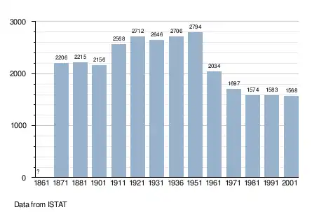 - ↑ "Popolazione Residente al 1° Gennaio 2018". Italian National Institute of Statistics. Retrieved 16 March 2019.
