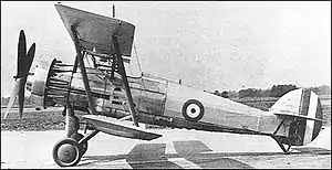 A seventh aircraft, the Vickers Type 177 was built as a private venture to meet the requirements of Air Ministry Specification N.21/26 for a naval fighter, being fitted with a Jupiter XF engine and steerable wheel braking to aid on-deck manoeuvering. The Type 177 first flew on 26 November 1929,[3] and while it was shown to have a maximum speed of 190 mph (310 km/h),[4] the Hawker Nimrod, not designed against this specification, was chosen instead to meet the Fleet Air Arm's requirement for a fighter.[4]