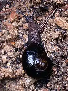 Victaphanta compacta, common name the Otway black snail, is a species of carnivorous air-breathing land snail, a terrestrial pulmonate gastropod mollusks in the family Rhytididae.[2] The Otway Black Snail Victaphanta compacta is only found in hot temperate rainforests in Australia. It is one of four species of the carnivorous land snails in the genus Victaphanta and is endemic to the Otway Ranges.[3]