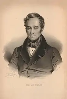 Victor de Broglie, 3rd Duke of Broglie (French: [viktɔʁ də bʁɔj, - bʁœj]; 28 November 1785 – 25 January 1870), briefly Victor de Broglie,[1] was a French peer, statesman, and diplomat. He was the third duke of Broglie and served as president of the Council during the July Monarchy, from August 1830 to November 1830 and from March 1835 to February 1836. Victor de Broglie was close to the liberal Doctrinaires who opposed the ultra-royalists and were absorbed, under Louis-Philippe's rule, by the Orléanists.