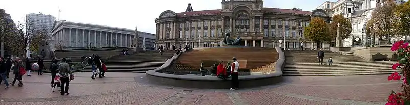 The square is surrounded by many prominent buildings. On the western side is the Town Hall, on its northern side is the Council House, on its eastern side is 130 Colmore Row and on the south side is Victoria Square House.