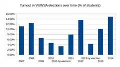The turnout in recent VUWSA elections as a percentage of enrolled students at VUW.