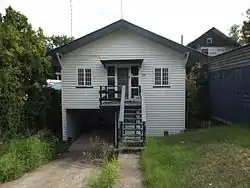 Vida Lahey's house was originally built for Romeo Lahey above Canungra, on a spur of the Darlington Range and was completed in 1920. Later the house was moved from the outskirts to the Canungra township on the hill above the present Catholic Church and occupied by David and his wife, Jane Jemima Lahey née Walmsley, and then moved again by Vida and Jayne Lahey in 1946 to its present block in Sir Fred Schonell Drive, St Lucia.[1]