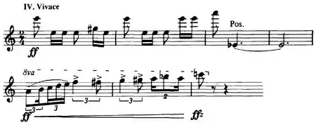 The four parts are in contrasting tempo, slow–fast–slow–fast. Both slow movements, 1 and 3, are marked Molto sostenuto (aber nie schleppend) (but never dragging), both fast movements Vivace.