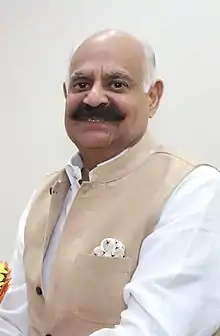 Vijayender Pal Singh Badnore (born 12 May 1948) is an Indian politician who was the 28th Governor of Punjab. He was a member of Rajya Sabha, elected on 17 June 2010. He was earlier a member of the 14th Lok Sabha and 13th Lok Sabha of the Indian Parliament. He represented the Bhilwara constituency of Rajasthan and is a member of the Bharatiya Janata Party (BJP) political party from 1999 to 2009 and also 4 time Member of Rajasthan Legislative Assembly (1977–80, 1985–90, 1993–98, 1998–99).[2]