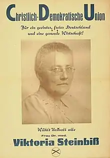 Viktoria Steinbiß (August 19, 1892 February 11, 1971) was a German politician of the Christian Democratic Union (CDU) and former member of the German Bundestag.[1]