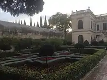 The estate has always been historically known for its beautiful large gardens.[10] The large landscape of the gardens of the palace has given it the name of Francia Estate. Maps show that approximately 90% of the property consist of the gardens.[3] The large gardens are divided into two areas; the prominent one is located at the front of the palace and the vast larger gardens at the back. In the back garden of the palace a nympheum and a large reservoir could be found until day. A small set aside building was built as a headquarters for the maids and workers at the villa. The palace has some unique Maltese architectural features such as sculptures, a remissa and horse stables. In the garden, a coach room, a water mill and 10 fountains can be found. It has a magnificent belvedere surrounded by two hectares of land overlooking Mosta.[6]