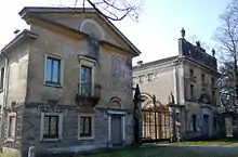 While the villa has Renaissance-style elements, it also incorporates styles from various refurbishments over the centuries.. The villa is named after a twentieth century Giraffe statue in one of the courtyards. Isabella d'Este, wife of the Marquis Francesco II Gonzaga, donated the villa to the Capuchin order, wherein they established a monastery. The monks were expelled by the Napoleonic government, and the buildings were made into a military hospital. Later the building was used as an inn and a school.[1] Presently the site and gardens is not in use and pending restoration.[2]